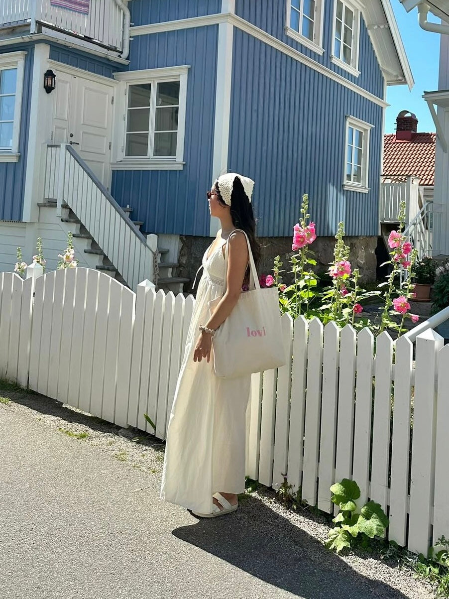 this cute tote bag has a pink lovi print in the center and with its minimalist design, it works for every look. it also has a small pocket on the inside where you can keep your keys, wallet or phone. use it in your everyday life!